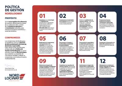 Nordlogway se posiciona como un referente en el sector logístico, asumiendo su responsabilidad con el medioambiente con gran compromiso. Como proveedor logístico ecológico, la empresa reconoce el impacto de sus operaciones en el entorno y se ha convertido en un agente de cambio positivo al adoptar logística inteligente para la sostenibilidad. Los compromisos éticos y la toma de decisiones responsable son la base de la Política de Gestión de Nordlogway, que se articula a través de doce principios clave que guían su camino. Estos principios no solo impulsan el crecimiento rentable de la empresa, sino que también reflejan su fuerte compromiso con las iniciativas de sostenibilidad logística y la minimización de la huella de carbono en las cadenas de suministro.
